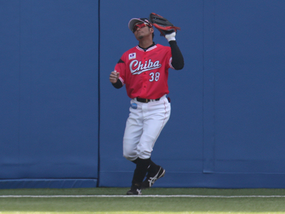 伊志嶺は慎重に打球を追いかける