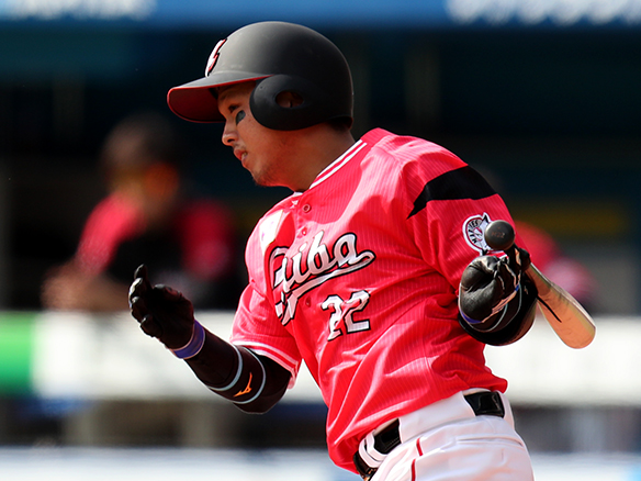 投手 チェン・グァンユウ 5番 メヒア 空三振 内角高めのストレートを空振り三振 1アウト |