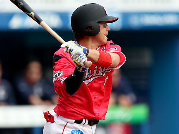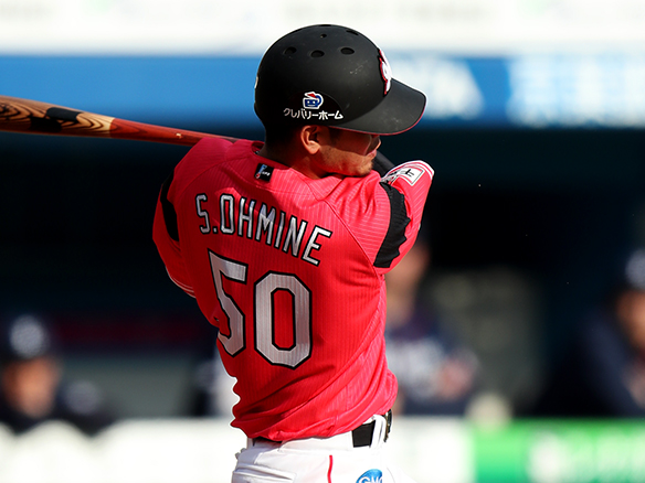 1番 秋山 遊併打 ランナー1塁 外角高めのフォークを打つもショートゴロのダブルプレー 2アウト |