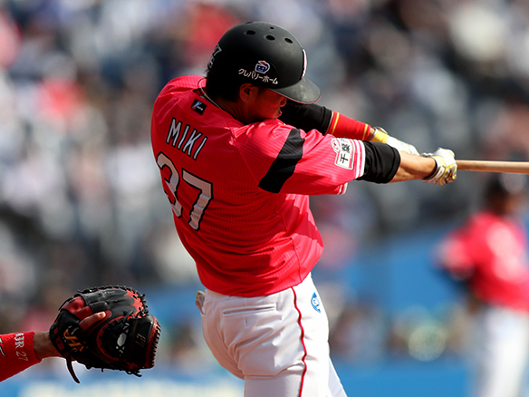 3番 浅村 中安 ランナー2,3塁 外角低めのスライダーをセンターへタイムリーヒット! 1塁 ロ2-10西 ![]() 2