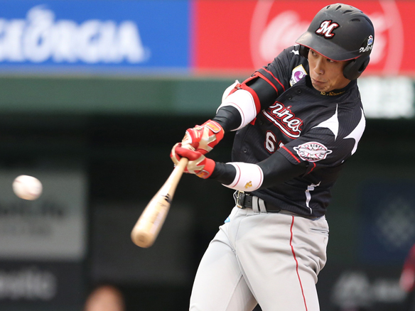 2番 荻野貴 三ゴロ 内角のカーブを打つもサードゴロ 2アウト |