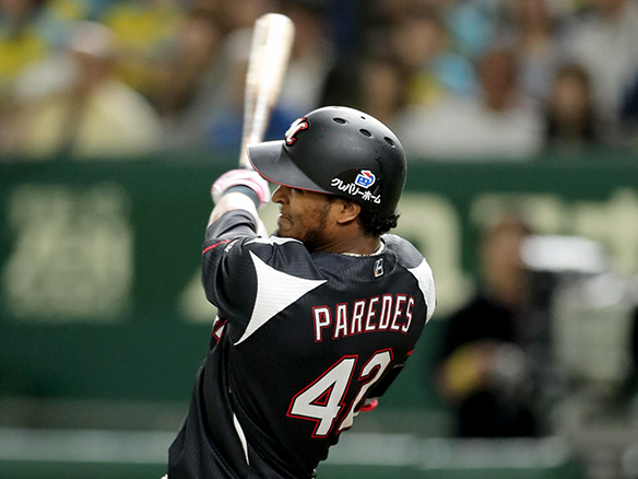 6番 パラデス 右安 ランナー2塁 外角高めのチェンジアップをライトへ打ってヒット 1,3塁  |