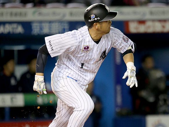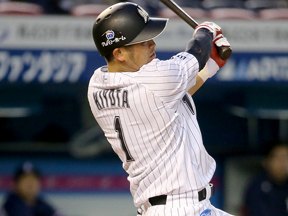 1番 秋山 四球 フォアボールを選ぶ 1塁  |