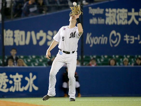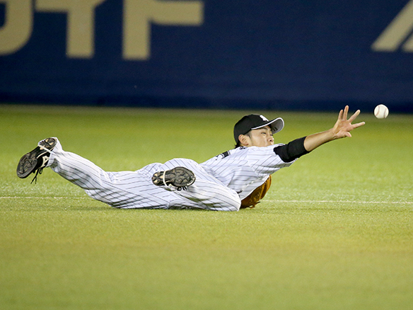 平沢が二遊間の打球に飛びつく好守備を見せた