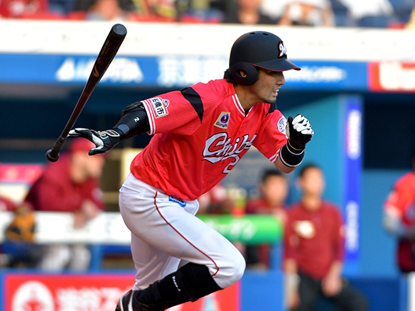 2番 ペゲーロ 左2 外角のフォークをレフトへ打ってツーベース 2塁  |