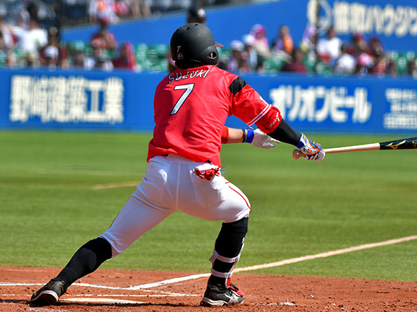 6番 鈴木 中飛 外角低めのストレートを打つもセンターフライ 2アウト  |