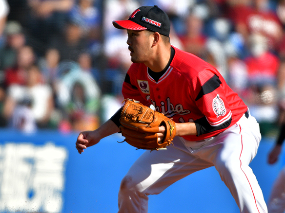3番 島内 二ゴロ 低めのフォークを打つもセカンドゴロ 3アウトチェンジ  |