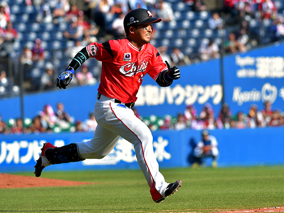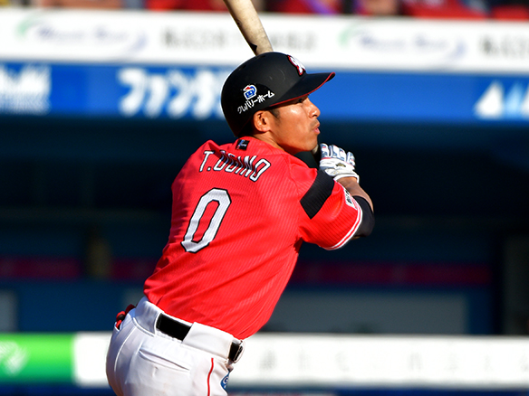 清田がつまりながらもチャンスを広げるヒットを放つ