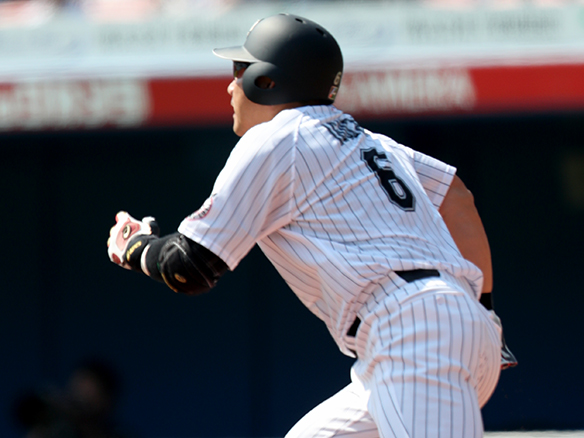 5番 鈴木 左安 高めのストレートをレフトへ打ってヒット 1塁  |