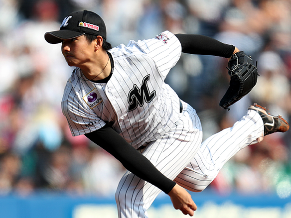 投手 岸 3番 根元 二ゴロ 外角のチェンジアップを打つもセカンドゴロ 1アウト  |