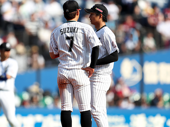 投手 唐川 守備変更:大嶺翔→ショート 守備変更:ダフィー→サード 守備変更:大谷→ピッチャー  |