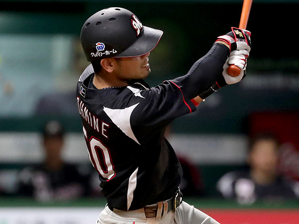 8番 上林 右2 外角低めのシンカーをライトへ打ってツーベース 2塁  |
