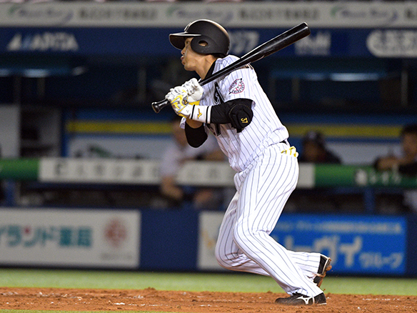 2番 荻野貴 四球 フォアボールを選ぶ 1塁  |