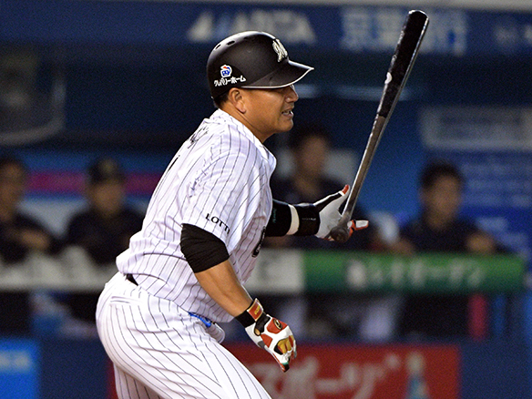 2番 根元 左安 ランナー2塁 外角低めのフォークをレフトへ打ってヒット 1,3塁  |