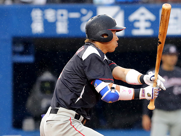 大嶺翔がレフトへの安打で後ろにつなぐ