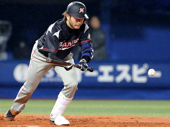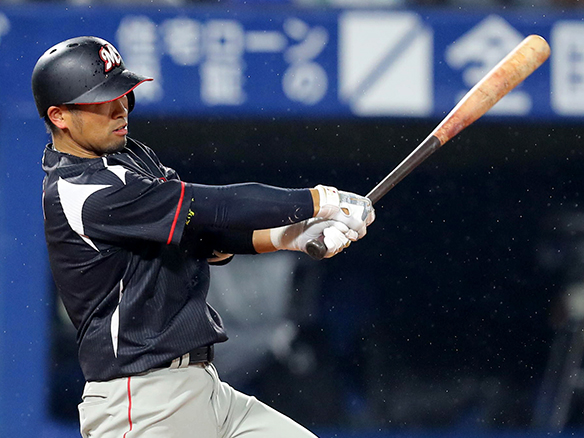 1番 荻野貴 左安 外角低めのスライダーをレフトへ打ってヒット 1塁 |