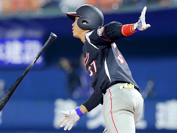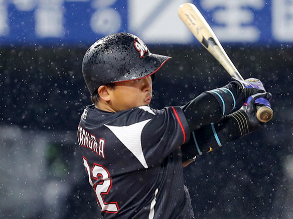 田村がライトフェンス直撃の3点適時二塁打を放つ!!
