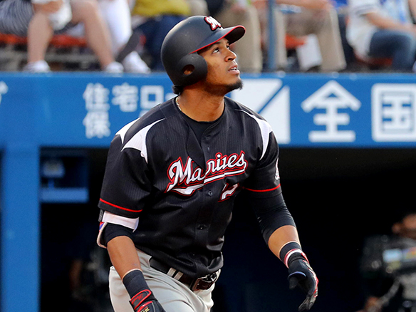 2番 エリアン 空三振 外角低めのフォークを空振り三振 2アウト |