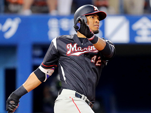 3番 ロペス 左安 ランナー1塁 内角のフォークをレフトへ打ってヒット 1,2塁 |