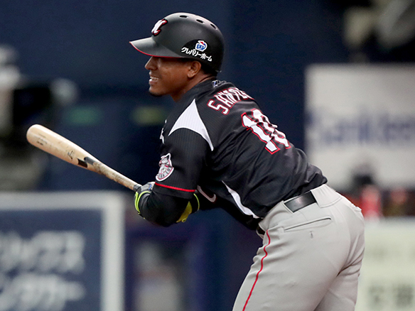 1番 サントス 遊安 高めのストレートをショートへ打ってヒット 1塁 |