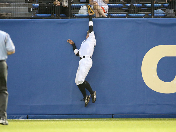 フェンスにぶつかりながら大飛球を好捕した加藤