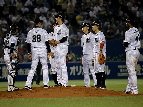 涌井はこの回初安打を許すも冷静な投球で後続を打ち取った