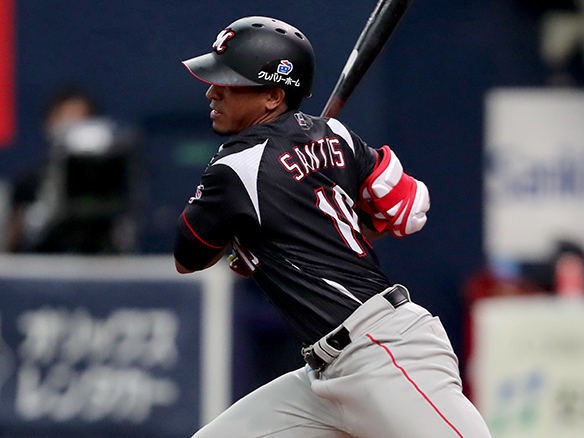 1番 サントス 右飛 高めのストレートを打つもライトフライ 2アウト |