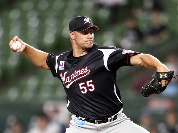 4番 パラデス 空三振 内角低めのフォークを空振り三振 1アウト |