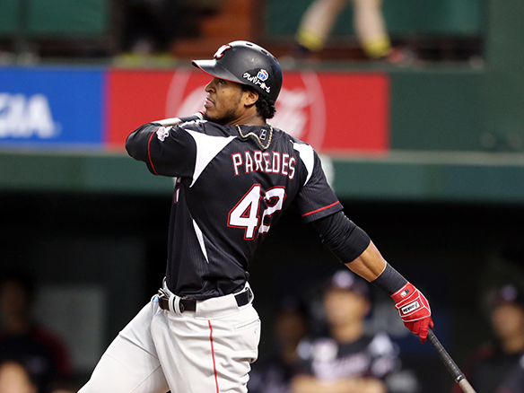 パラデスがレフトへ二塁打を放ち2点を追加した!!