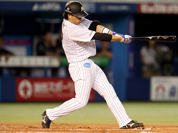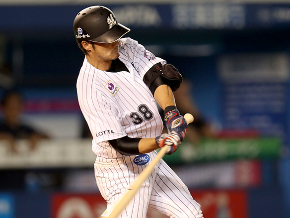 福浦の走者一掃となる3点適時二塁打でリードを広げる!