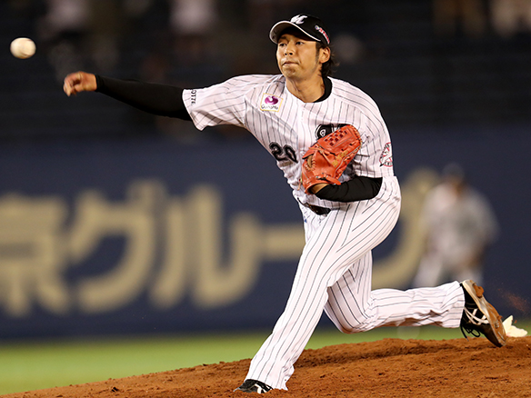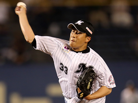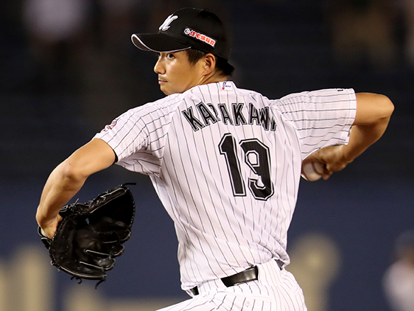 初回を2つの三振を含む3者凡退に抑える先発・唐川