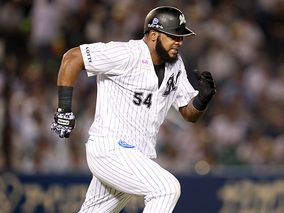 4番 ロメロ 四球 フォアボールを選ぶ 1塁 |