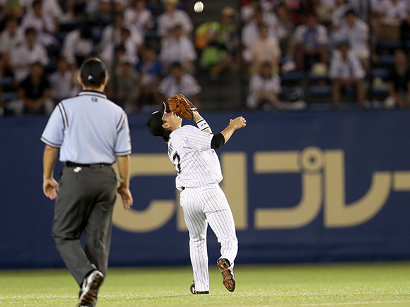 鈴木がレフトへ飛球を放つも好捕に阻まれる