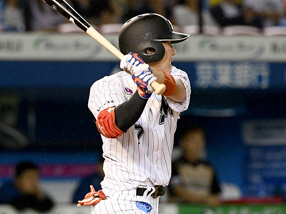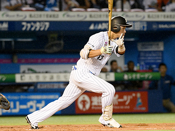 1番 荻野貴 左2 低めのカーブをレフトへ打ってツーベース 2塁 |