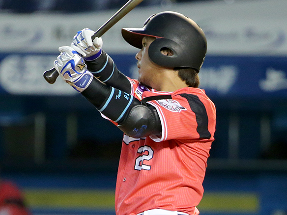 7番 サントス 左2 ランナー1,2塁 外角高めのストレートをレフトへタイムリーツーベース! 2塁 ロ10-2ソ ![]() 10