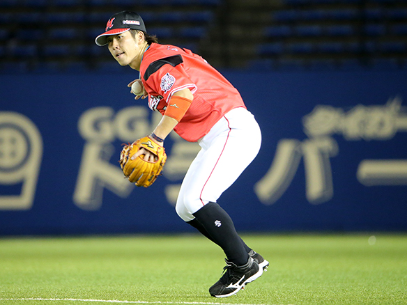 途中出場の細谷がレフト前ヒットでチャンスメークする