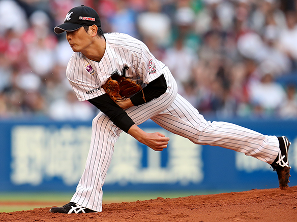 投手 涌井 4番 中村 空三振 内角のストレートを空振り三振 1アウト |