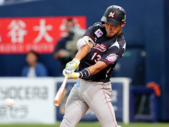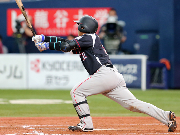 3番 角中 四球 フォアボールを選ぶ 1塁 |