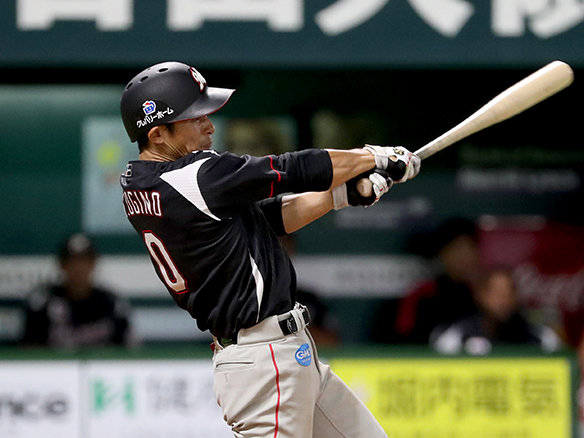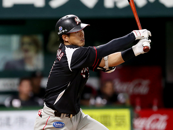 1番 荻野貴 中安 ランナー3塁 外角低めのカーブをセンターへタイムリーヒット! 1塁 ソ3-10ロ ![]() 3