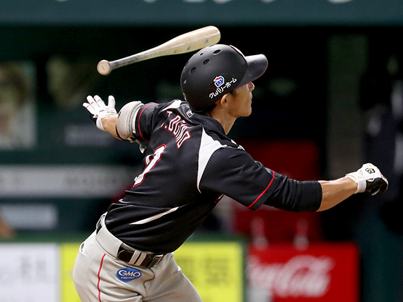 1番 明石 左安 ランナー1塁 内角高めのスライダーをレフトへ打ってヒット 1,2塁 |