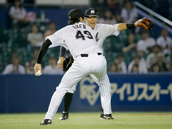 チェンが見事なフィールディングを見せ二塁を封殺する