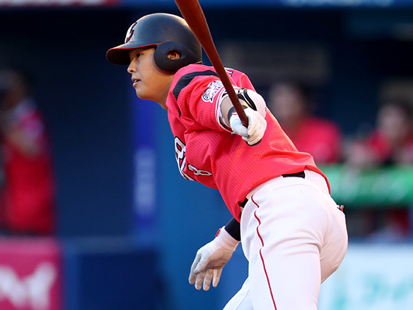 6番 中村 左安 外角低めのフォークをレフトへ打ってヒット 1塁 |