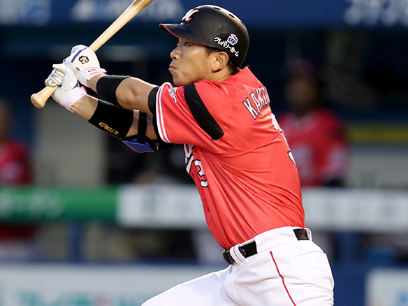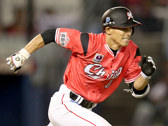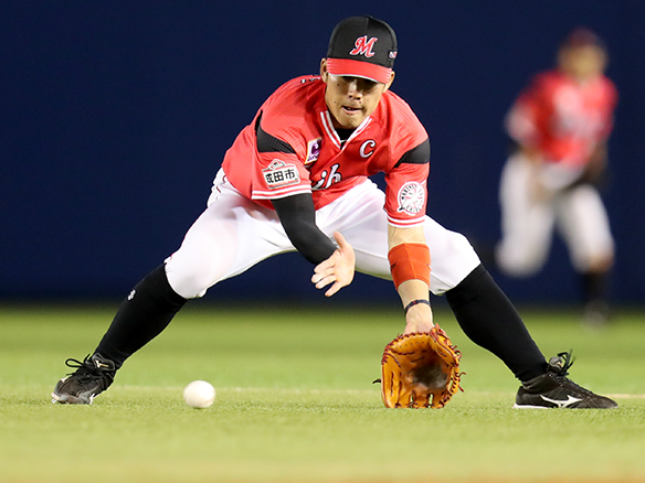 2番 荻野貴 遊安 外角低めのフォークをショートへ打ってヒット 1塁 |