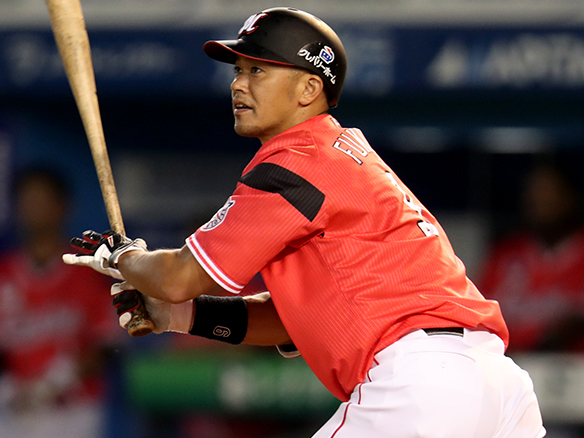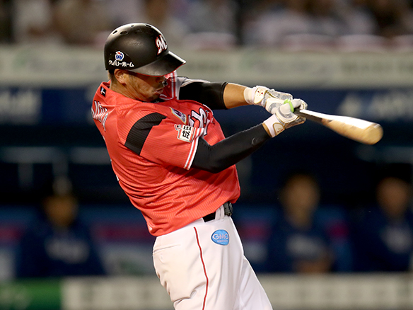 9番 石井一 右本 ランナー1,3塁 カウント1-0からライトスタンドへ勝ち越し3ランホームラン! ロ2-5日 ![]() 2