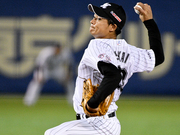 1番 明石 右安 ランナー2塁 外角低めのフォークをライトへ打ってヒット 1,3塁 |
