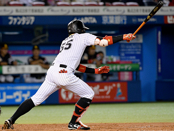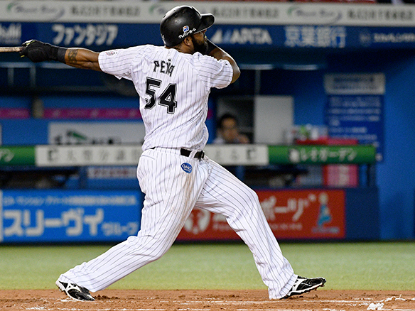 ペーニャがレフトスタンドへ特大ホームランを放つ!