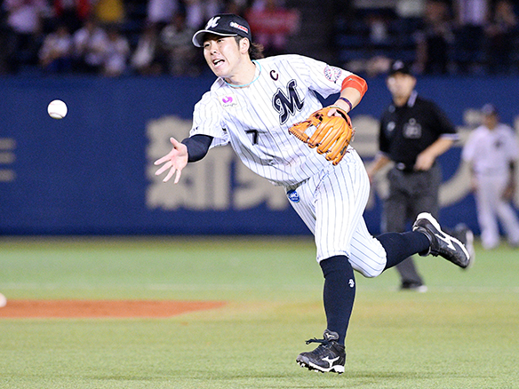 5番 角中 二ゴロ ランナー2塁 外角低めのシンカーを打つもセカンドゴロ 3塁 1アウト |