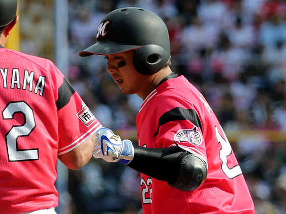 5番 デスパイネ 四球 フォアボールを選ぶ 1,2塁 |