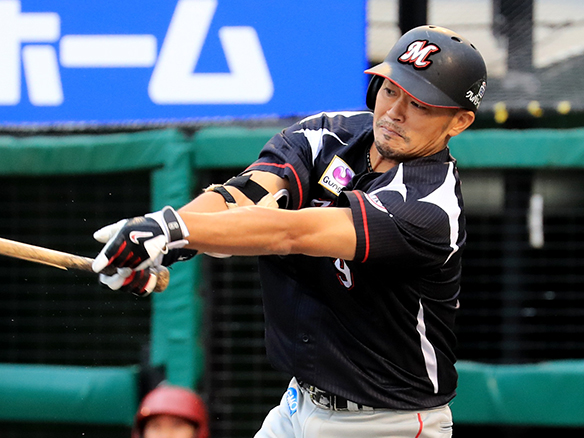 1番 岡島 中安 ランナー2,3塁 外角のストレートをセンターへタイムリーヒット! 1塁 楽10-4ロ ![]() 10