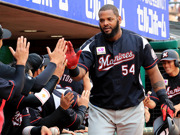 4番 ペゲーロ 中安 低めのフォークをセンターへ打ってヒット 1塁 |
